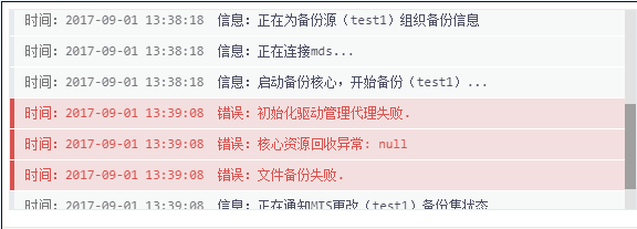 Q1:文件備份失敗,詳細(xì)日志里報(bào)“初始化驅(qū)動(dòng)管理代理失敗”