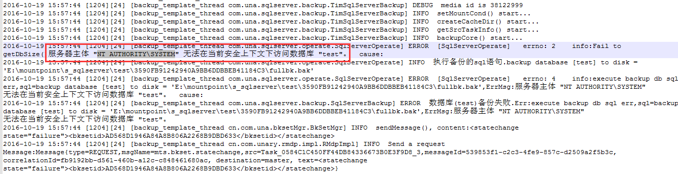 Q1:備份失敗,報(bào)“服務(wù)器主體NT AUTHORITY\SYSTEM無(wú)法在當(dāng)前安全上下文訪問(wèn)數(shù)據(jù)庫(kù)test”