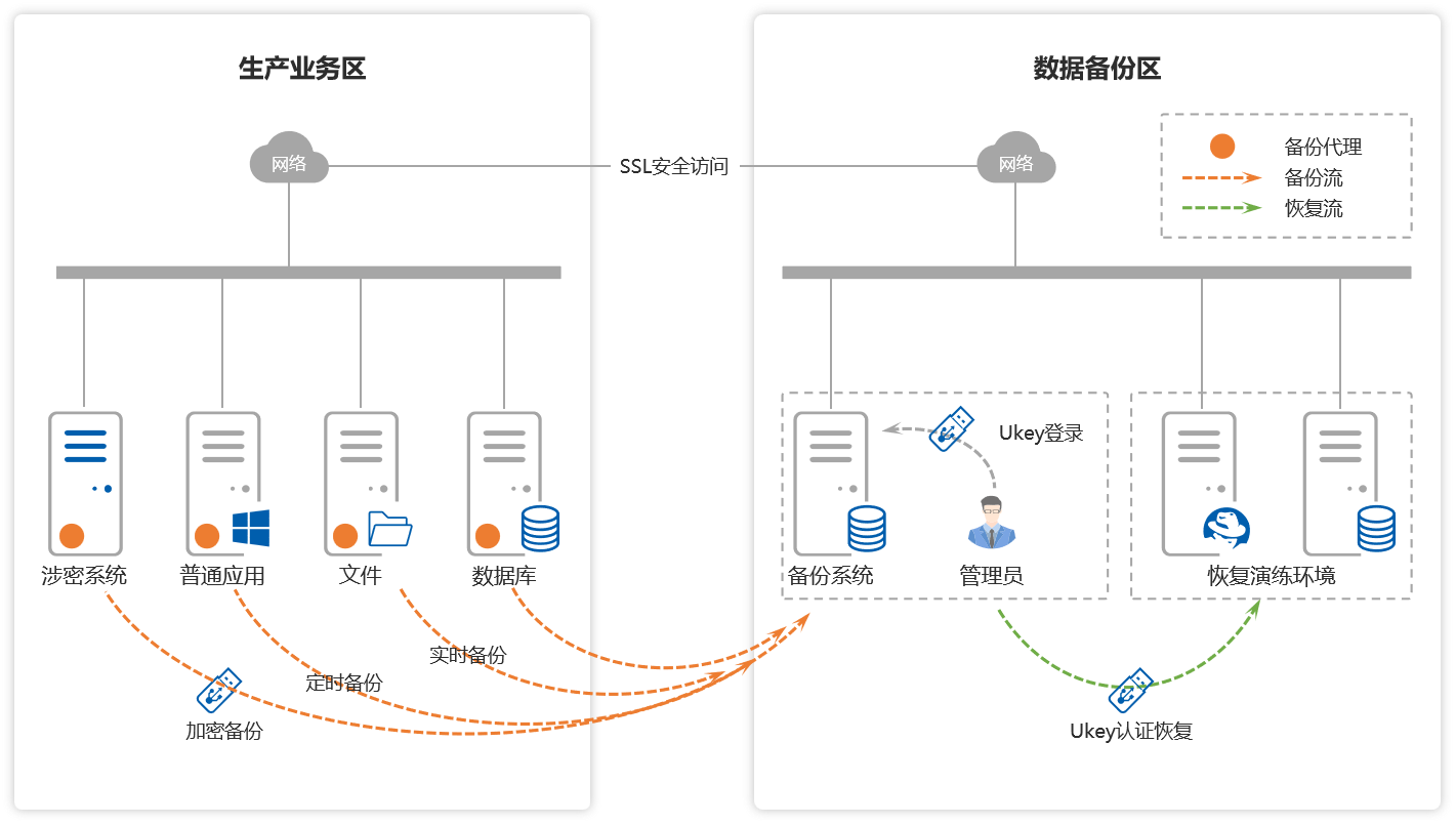 在涉密信息系統(tǒng)安全要求嚴(yán)苛、黨政SM數(shù)據(jù)保護(hù)刻不容緩的行業(yè)大勢(shì)下,航天壹進(jìn)制將密碼應(yīng)用規(guī)劃納入頂層網(wǎng)絡(luò)安全體系整體建設(shè)中,推出典型商用密碼可信災(zāi)備場(chǎng)景解決方案,全力筑牢數(shù)據(jù)安全堅(jiān)固防線。