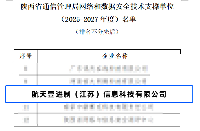 為進(jìn)一步加強(qiáng)電信和互聯(lián)網(wǎng)行業(yè)網(wǎng)絡(luò)和數(shù)據(jù)安全技術(shù)保障體系和支撐隊(duì)伍建設(shè),保障陜西省公共互聯(lián)網(wǎng)安全、穩(wěn)定運(yùn)行,根據(jù)《陜西省通信管理局關(guān)于開展網(wǎng)絡(luò)和數(shù)據(jù)安全技術(shù)支撐單位(2025-2027年度)遴選工作的通知》,經(jīng)綜合評(píng)審,航天壹進(jìn)制憑借其在網(wǎng)絡(luò)安全與數(shù)據(jù)安全領(lǐng)域扎實(shí)的技術(shù)積累、豐富的實(shí)戰(zhàn)經(jīng)驗(yàn)以及卓越的災(zāi)備服務(wù)能力,成功入選2025-2027年度陜西省網(wǎng)絡(luò)和數(shù)據(jù)安全技術(shù)支撐單位。